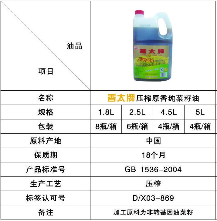 下一篇: 香太牌純香壓榨菜籽油
