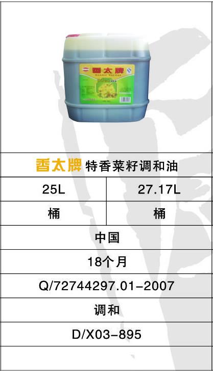 上一篇: 香太牌清香菜籽調(diào)和油